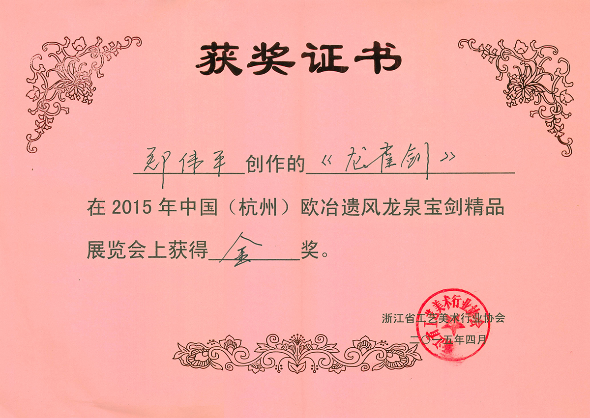 : 鎏金牡丹劍獲獎(jiǎng)證書
