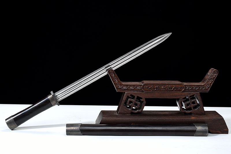 12寸秋謹(jǐn)劍 花紋紋鋼 八面開(kāi)雙槽 過(guò)砂帶拋光磨口 無(wú)花口快口 柄長(zhǎng)11CM 黑檀木 手工包銅黑色 劍身2.7M 黃色戰(zhàn)車錦盒裝 黑布袋 5折冊(cè) 保養(yǎng)卡 小刀油