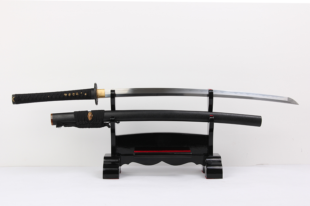 28寸高檔手工刀全長:104cm 刃長:68cm 柄長:28cm刃材:1095鋼燒刃無槽三色大頭柄材:實木 繞黑色帶+真魚皮鞘材:實木黑點殼二個黃牛角 繞黑色真絲帶配件:銅包裝:梧桐木盒外加雙瓦紙盒裝 帶盒裝玉刀油銅錘 黑色梅花真絲刀袋 西班牙單層亮光刀架不印字貼紅布 黑說明書