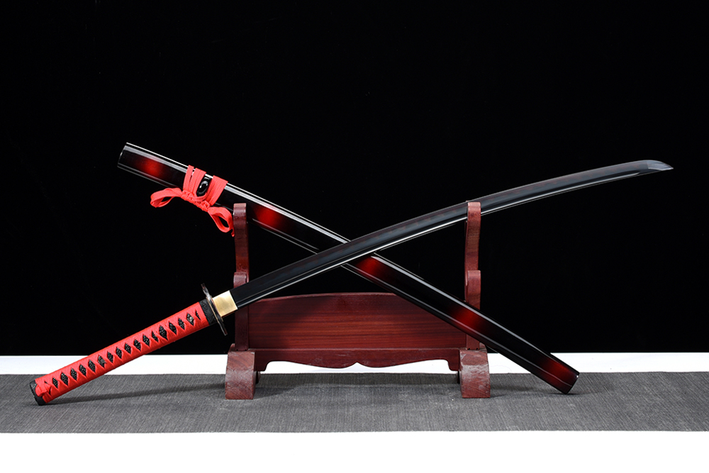 28寸高檔手工刀全長:104cm 刃長:68cm 柄長:28cm刃材:1045鋼 燒刃全磨全槽發(fā)黑刃紋要清晰 刃線到刀尖快口柄材:實(shí)木 繞紅色帶+仿魚皮鞘材:實(shí)木黑底紅太陽殼 繞紅色帶配件:銅+鋅合金包裝:雙瓦紙盒裝 黑布刀袋