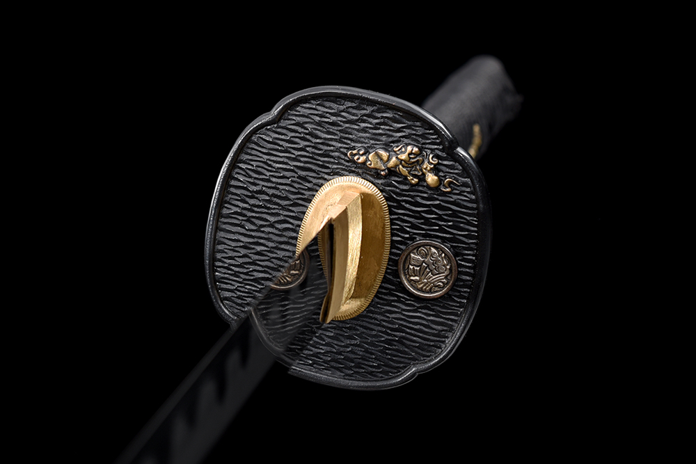 鞘材:實(shí)木黑點(diǎn)鞘繞半截藤黑色三個(gè)黃牛角 繞黑色真絲帶