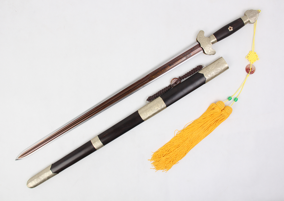 全長:103CM 刃長:77CM 柄長:23CM 劍身: 花紋鋼發(fā)紅刀鞘:黑檀木裝具:手工包銅 手工刻花包裝:木錦盒