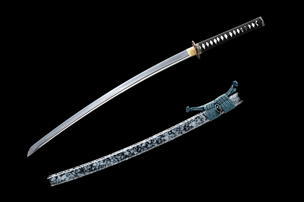 28寸手工刀全長:104cm 刃長:68cm 柄長:28cm刃材:1045鋼燒刃全槽有切線柄材:實木 繞黑色帶+仿魚皮鞘材:實木黑白大理石紋殼三圈黑 繞綠間藍真絲帶配件:銅+鋅合金包裝:雙瓦紙盒裝 帶黑布袋