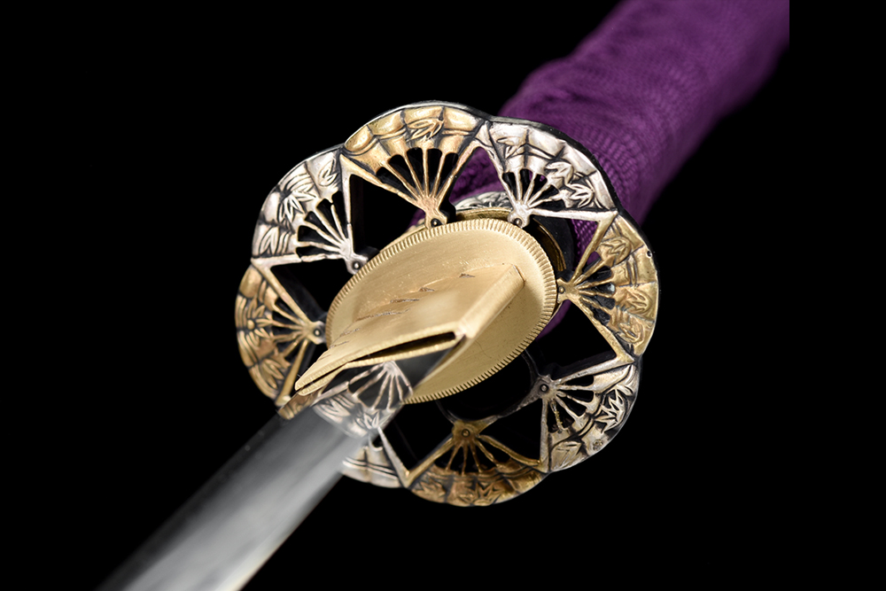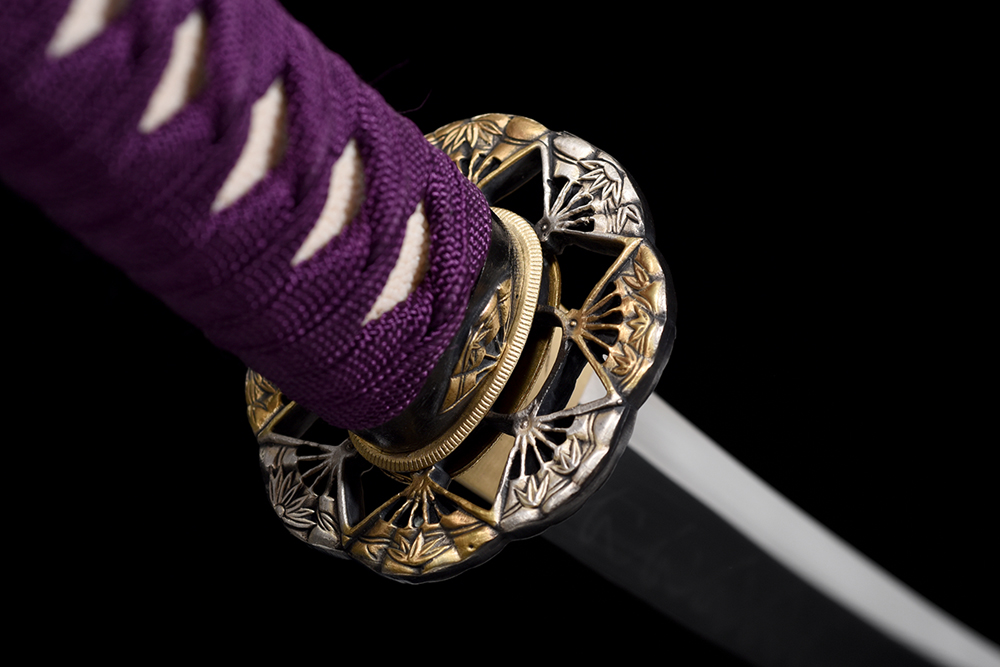 鞘材:實木黑底金加綠花亮光 繞紫色羊毛帶