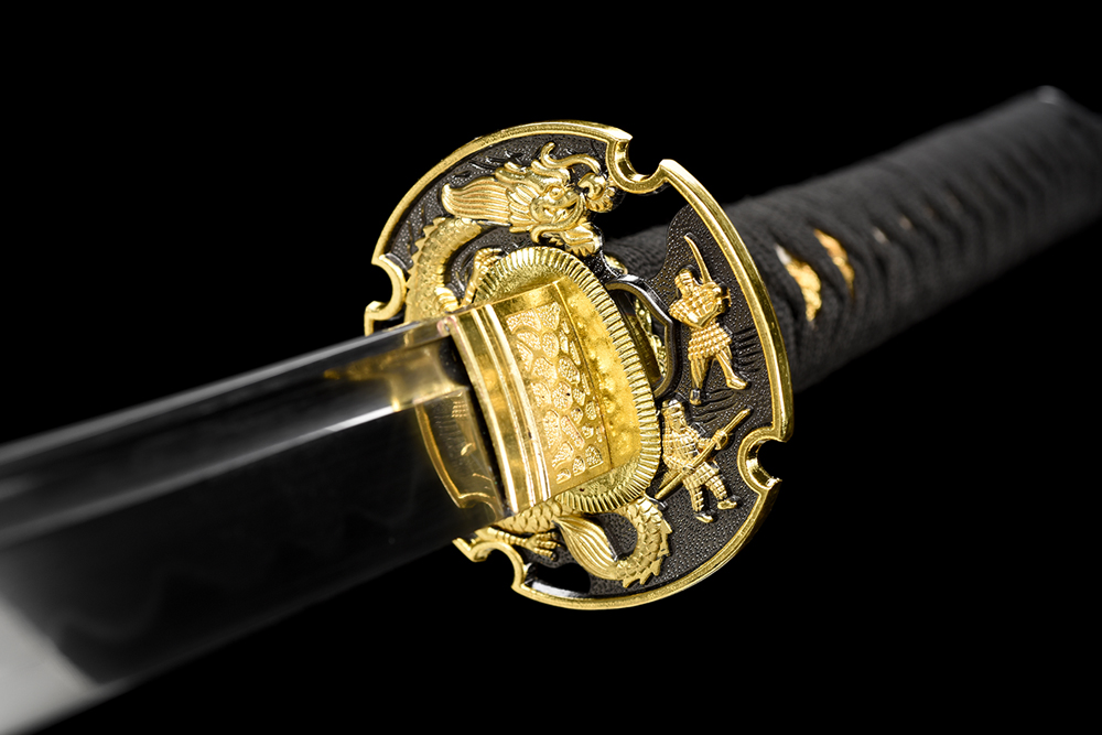 28寸手工刀全長:104cm 刃長:68cm 柄長:28cm刃材:1045鋼燒刃全槽有花口有切線柄材:實木 繞黑色帶+真魚皮鞘材:實木半透明酒紅三圈黑貼仿鑲貝回頭龍 繞黑色帶配件:銅+鋅合金包裝:黑彩盒帶黑布袋