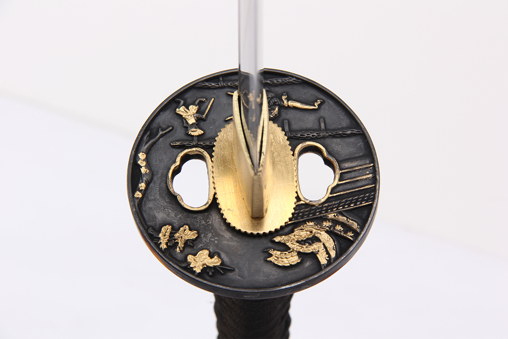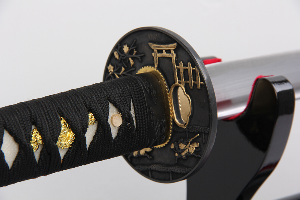 28寸手工刀全長:104cm 刃長:68cm 柄長:28cm刃材:百煉花紋鋼全槽有花口有切線柄材:實木 繞黑色帶+真魚皮鞘材:實木黑亮光漆 繞黑色帶配件:銅+鋅合金包裝:武士彩盒 帶黑布袋 大盒玉刀油銅錘