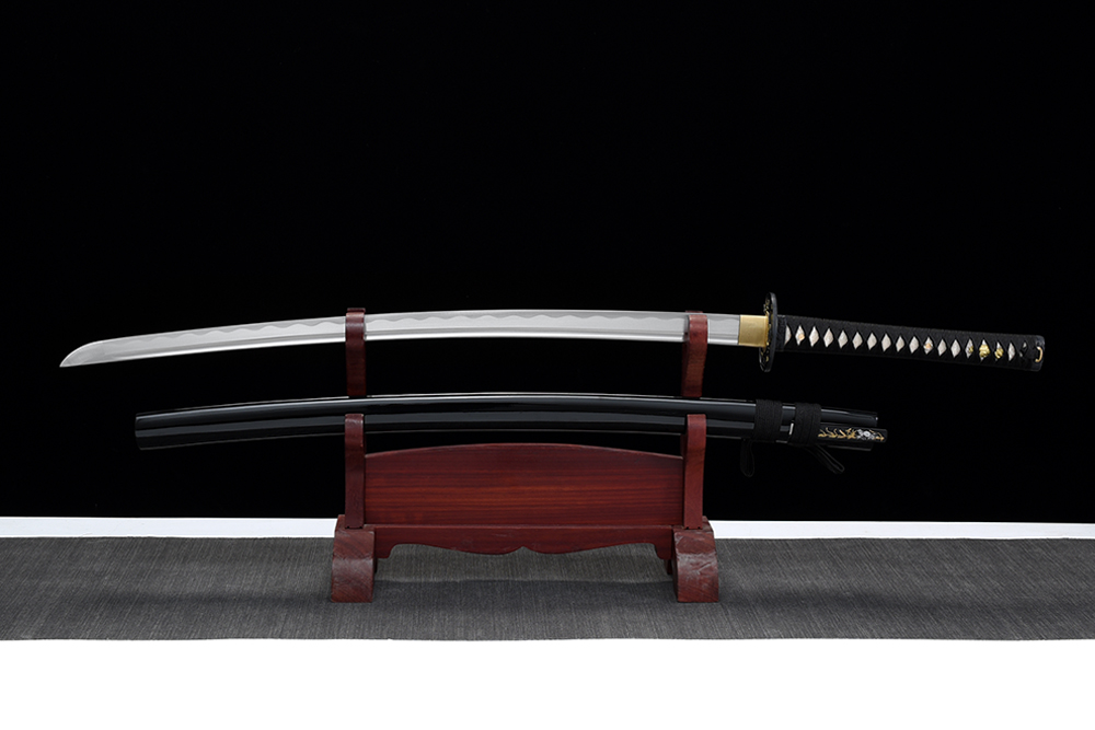 28寸手工刀全長(zhǎng):104cm 刃長(zhǎng):68cm 柄長(zhǎng):28cm刃材:1045鋼全槽有花口有切線 腹刀不銹鋼柄材:實(shí)木 繞黑色帶+仿魚皮鞘材:實(shí)木黑亮光帶腹刀插槽 繞黑色帶配件:銅+鋅合金包裝:黑彩盒 帶黑布袋