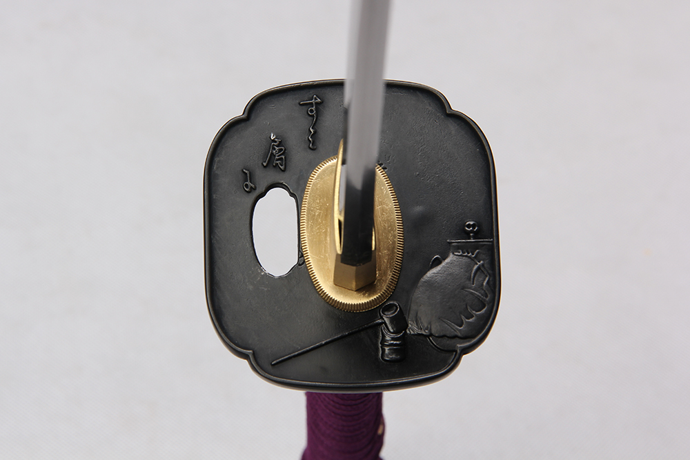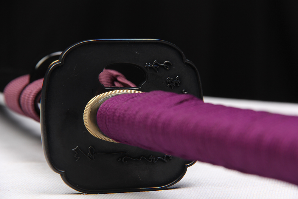 鞘材:實(shí)木黑亮光漆 繞淡紫色羊毛帶