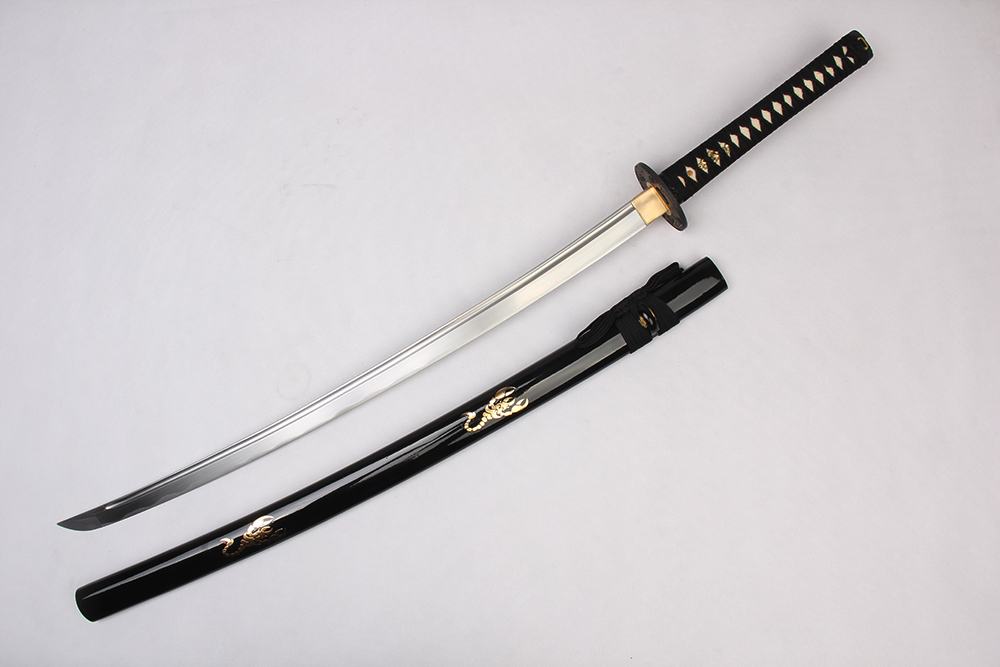 28寸手工刀全長:104cm 刃長:68cm 柄長:28cm刃材:1045鋼有槽有花口有切線柄材:實(shí)木 繞黑色帶+真魚皮鞘材:實(shí)木黑亮光貼金色蝎子 繞黑色帶配件:銅+鋅合金包裝:雙瓦紙盒 帶黑布袋