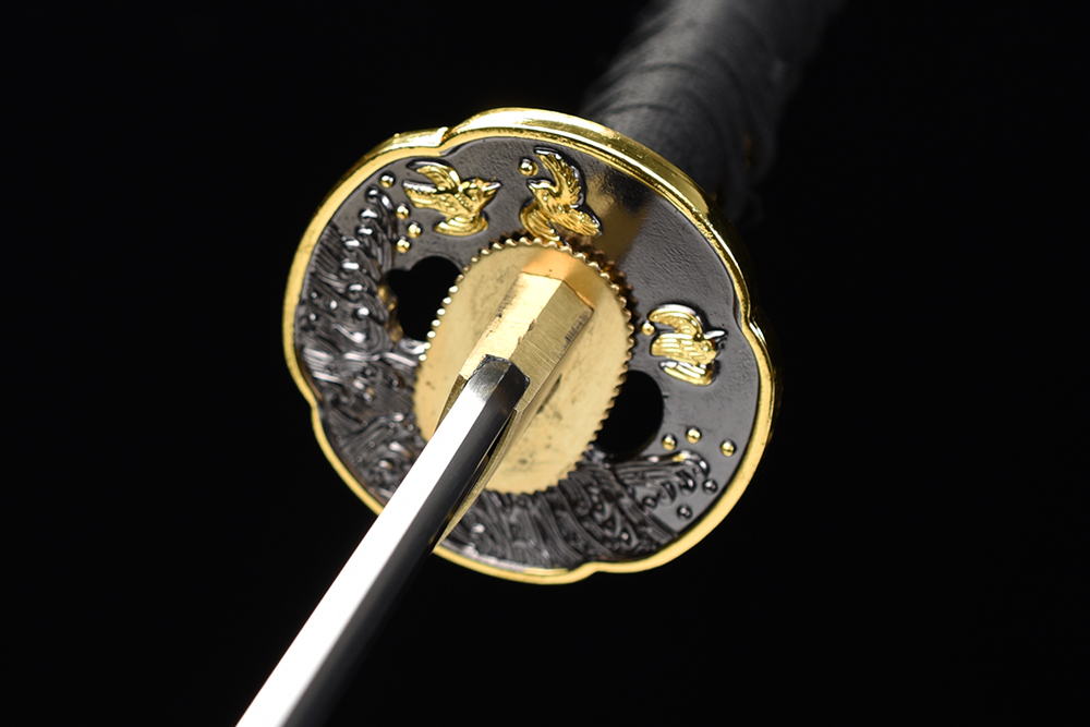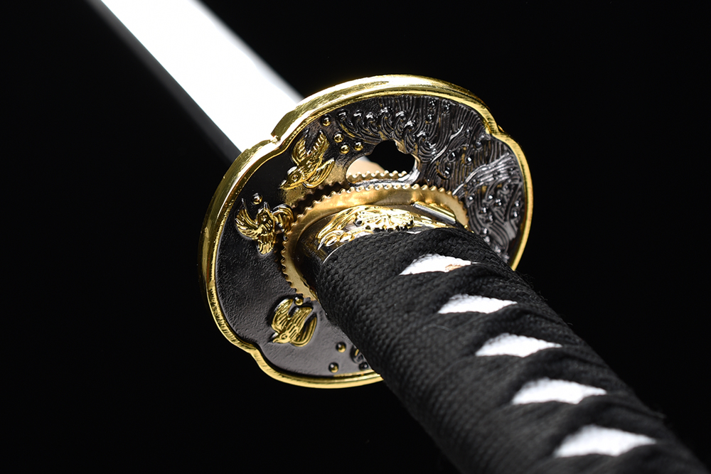 28寸手工刀全長(zhǎng):104cm 刃長(zhǎng):68cm 柄長(zhǎng):28cm刃材:1045鋼全槽有切線有花口柄材:實(shí)木 繞黑色帶+仿魚(yú)皮鞘材:實(shí)木黑亮光貼鑲貝葫蘆藤 繞黑色帶 配件:銅+鋅合金包裝:雙瓦紙盒 帶黑布袋