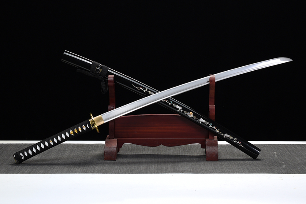 鞘材:實(shí)木黑亮光貼鑲貝葫蘆藤 繞黑色帶