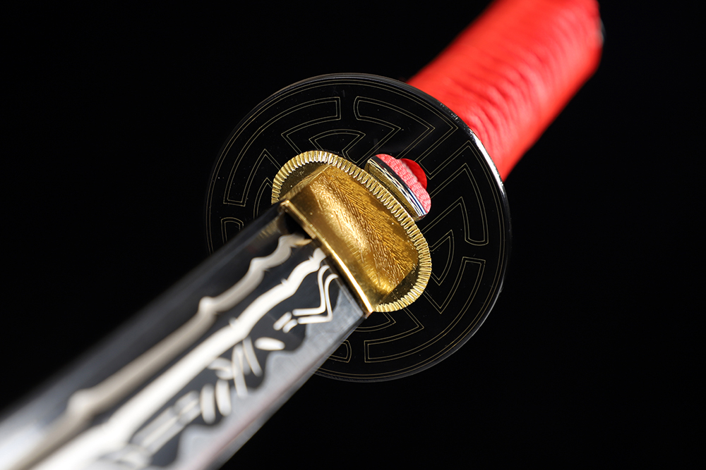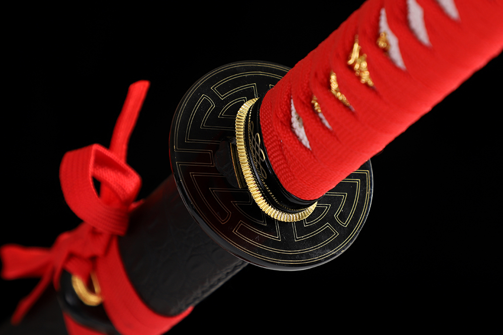 鞘材:實(shí)木包仿黑色鱷魚 繞大紅帶