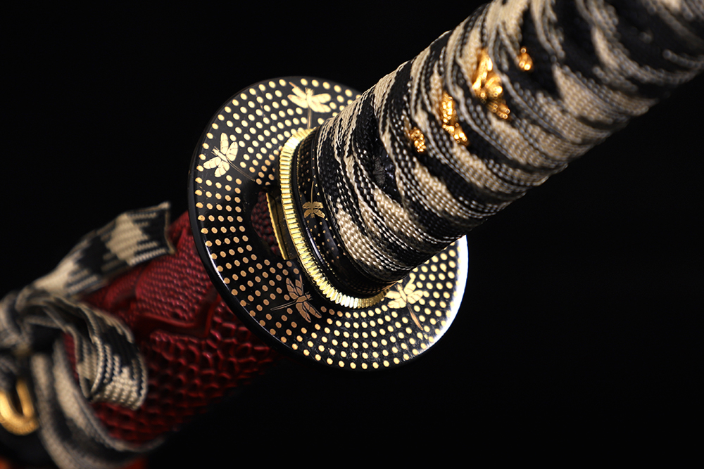 鞘材:實木包仿暗紅色蟒蛇皮 繞黃加黑帶