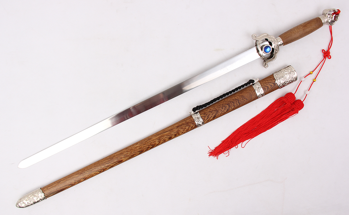 全長(zhǎng):103CM 刃長(zhǎng):77CM 柄長(zhǎng):23CM 劍身: 不銹鋼刀鞘:雞翅木裝具:槍灰包裝:木錦盒