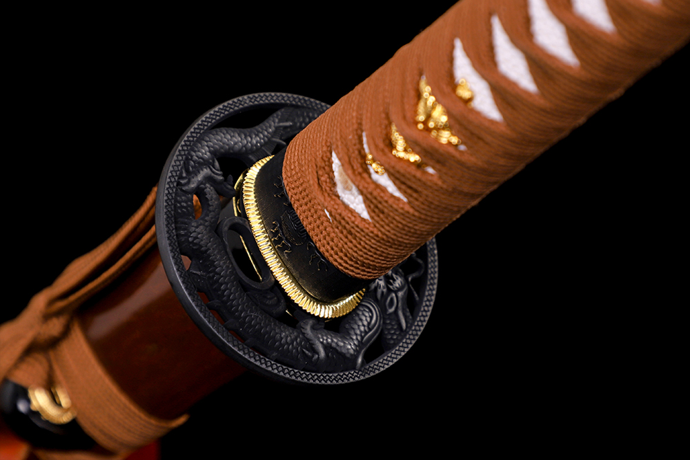 鞘材:實(shí)木黑亮光貼龍加半截咖啡色 繞棕色帶