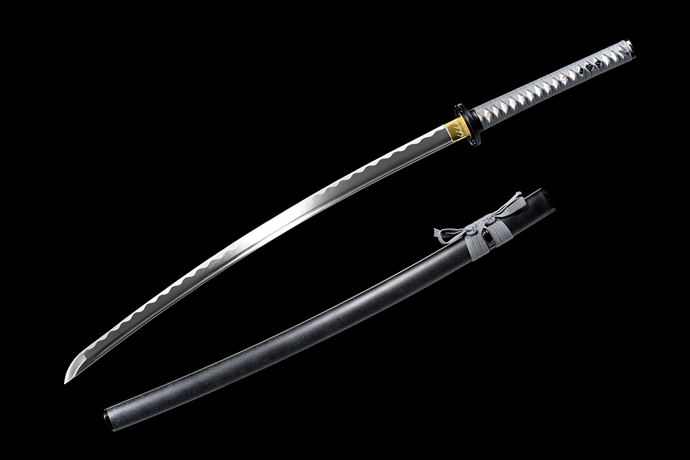 28寸手工刀全長:104cm 刃長:68cm 柄長:28cm刃材:1045鋼全槽有花口有切線柄材:實木 繞暗灰?guī)?仿魚皮 鞘材:實木亞光灰點平面三圈黑 繞暗灰?guī)浼轰\合金包裝:雙瓦紙盒 帶黑布袋
