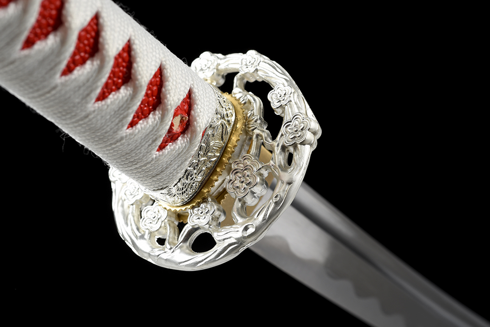 鞘材:實(shí)木白亮光貼手繪6朵花 繞白色帶
